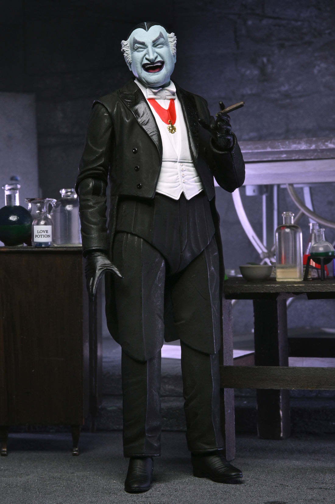Step into 1313 Mockingbird Lane with NECA’s Ultimate Grandpa Munster action figure! Inspired by the classic 1960s sitcom The Munsters, this highly detailed 7-inch scale action figure captures the mischievous charm of the beloved TV vampire. Dressed in his signature outfit, Grandpa is fully articulated and ready to cook up some kooky experiments. This collectible figure includes multiple interchangeable heads featuring the likeness of actor Al Lewis, as well as interchangeable hands, soft goods cape, several potions, and a shovel. Comes in collector-friendly window box packaging with opening front flap.